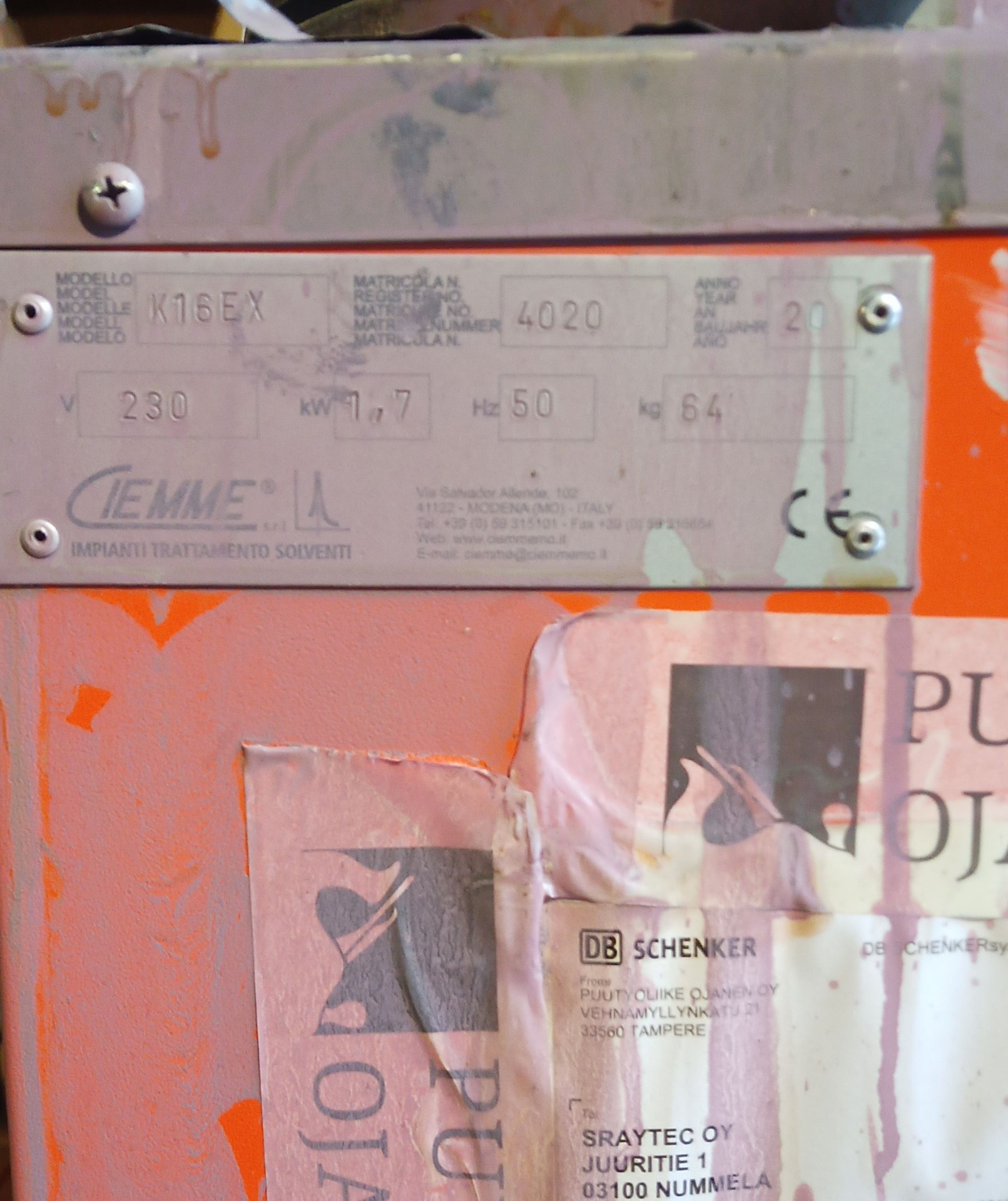Tämä Ciemme K16 EX on ammattikäyttöön tarkoitettu tislauslaite, jonka avulla maalaamot ja teollisuusyritykset voivat kierrättää likaiset liuottimet (kuten tinnerit ja asetonit) uudelleenkäytettäväksi. Laite kuumentaa maalinsekaisen ohenteen, höyrystää puhtaan liuottimen ja lauhduttaa sen takaisin nesteeksi. Jäljelle säiliön pohjalle jää vain kiinteä maalijäte. Tämä säästää valtavasti rahaa sekä uusien ohenteiden ostoissa että ongelmajätteiden hävitysmaksuissa!