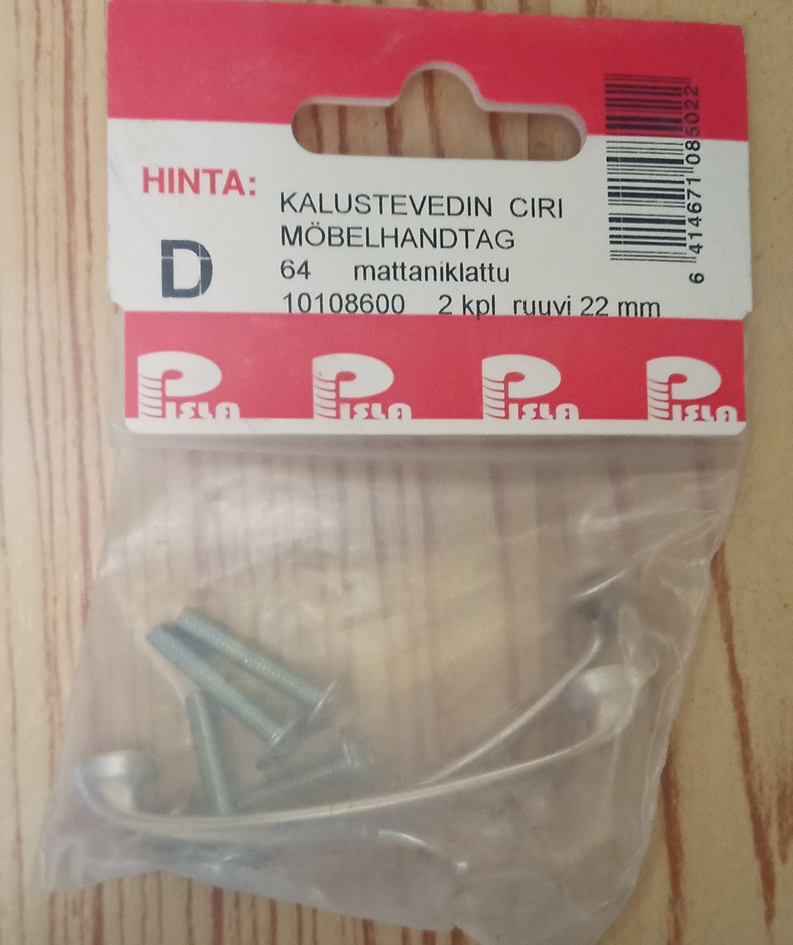 Ciri-kalustevedin 2kpl paketissa. Mattaniklattu 22 mm ruuveilla. 64 mm asennusväli.